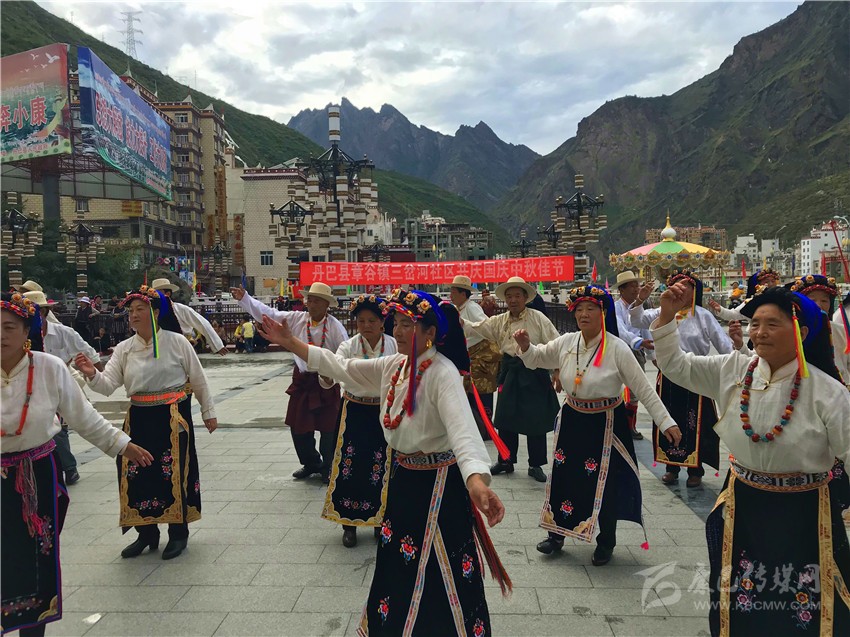 10月2日,在木雅鍋莊悠揚的旋律和輕盈的舞步中,歷時兩天的“2017康定情歌國際音樂節(jié)”盛大開幕,作為“五大民俗展演”中的特色民俗歌舞表演部分,木雅鍋莊吸引了眾多游客的關注。木雅鍋莊來源于木雅人的日常生產和生活,是當?shù)剞r耕文化習俗的重要表現(xiàn),表演服飾多以棕紅色外套,紅、白色襯衫為主,表演者多佩戴紅頭繩、珊瑚、金銀等裝飾物。舞蹈分男女兩組,列隊圍桌成圓形,皆彎腰垂首隨領唱歌聲而舞。男組舞姿氣勢豪放,女組舞姿委婉優(yōu)雅。唱腔宛轉悠揚,吸引了在場觀眾冒雨駐足觀看,有的甚至情不自禁隨著舞群踏起了舞步,融入到康巴文化的神秘魅力當中。