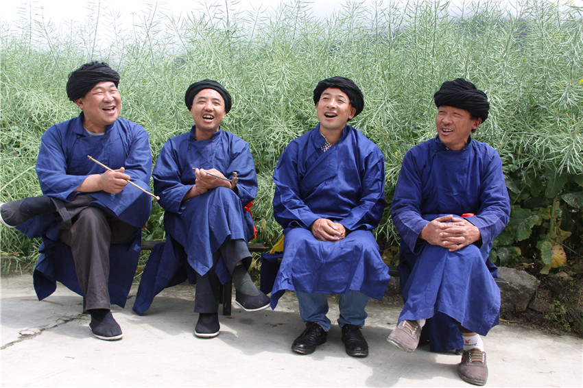 說(shuō)到這里,四個(gè)人臉上都露出憂郁的眼神:“現(xiàn)在的娃娃們只喜歡唱流行歌曲,偶爾有幾個(gè)會(huì)唱的,也只是一知半解,有可能‘十二杯子酒’酒歌在我們手上就要斷了路,真的希望更多的娃娃來(lái)學(xué)這首歌,所以我們要不斷地唱、不斷的感染他們,讓他們曉得老祖宗的東西不能丟,不能忘。酒歌不傳承給他們也只能爛在我們的肚子里面了。”