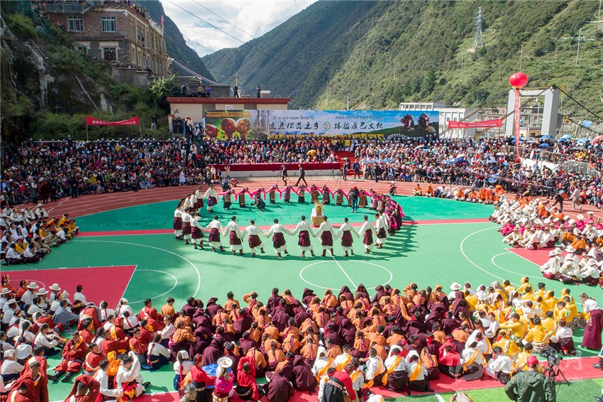 9月12日一早,雅江縣中學(xué)體育場(chǎng)內(nèi)人頭攢動(dòng)、座無(wú)虛席,一場(chǎng)由15支鍋莊隊(duì)聯(lián)合表演的“千人鍋莊”為主要載體的開(kāi)幕式演出在萬(wàn)眾期待中,將康巴兒女的豪邁和熱情,展現(xiàn)得淋漓盡致。