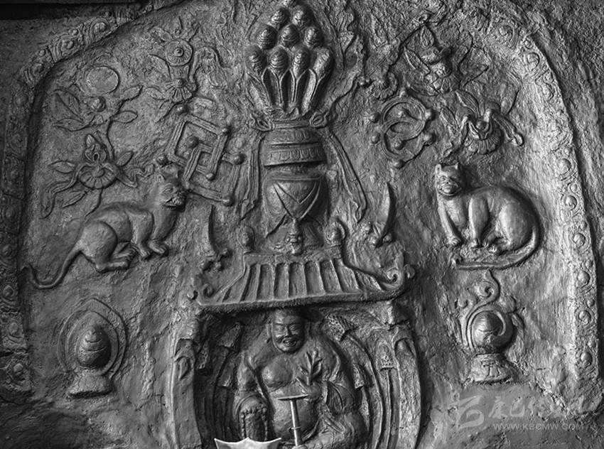 據(jù)他介紹,在鄉(xiāng)城傳統(tǒng)的民居白藏房里,每家每戶都時(shí)興裝飾灶臺(tái),圖案精致,色彩豐富。雖然,各家的式樣配色大相徑庭,但是不論如何變換,祈求人興物豐的一面圖騰之壁上,總是少不了“貓”的身影。