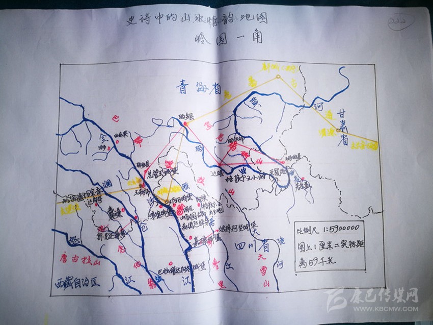 劉安全手繪格薩爾史詩(shī)涉及的山水地圖。