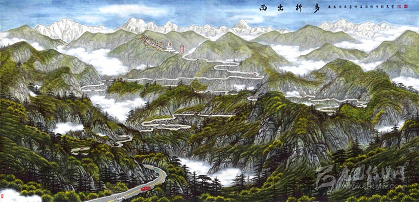 一路走來,雖將多數(shù)精力傾注于作畫,裴宏波卻始終沒忘自己是康定人,只要有機會,他就用“本領功”表達自己的家鄉(xiāng)情,“康定新八景”算是他對家鄉(xiāng)情的又一次詮釋。