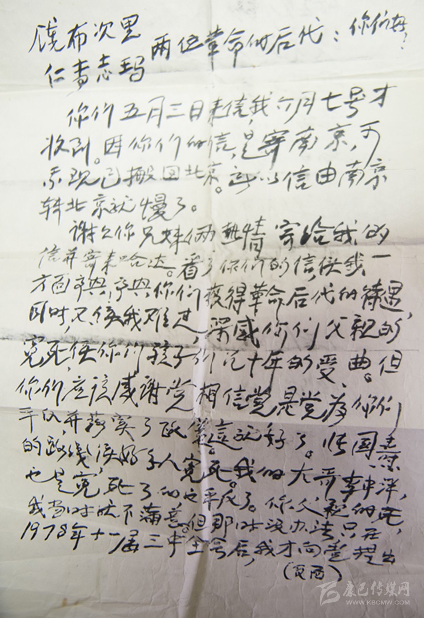 上個世紀八十年代李中權寫給馬駿子女的信。 洛絨尼瑪 攝