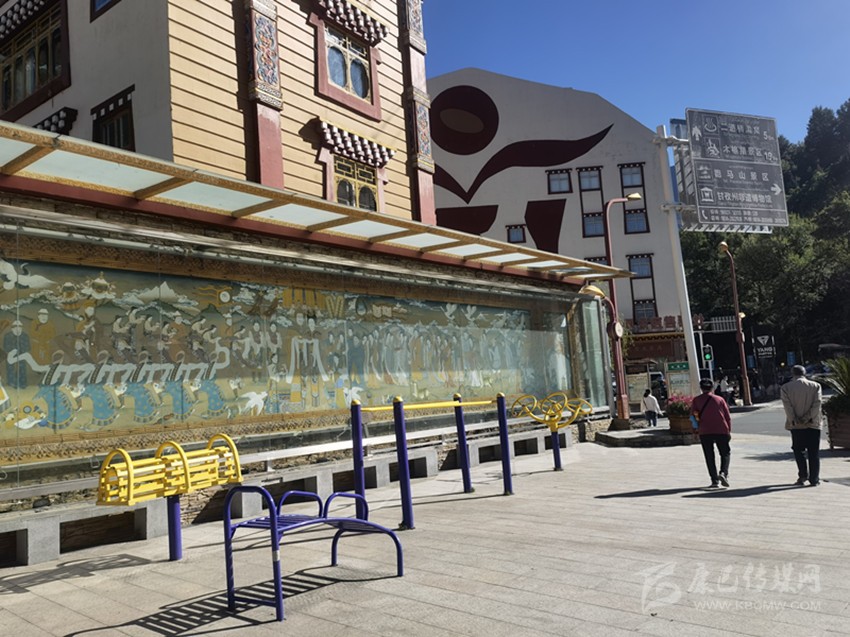 喝完酒,吃完菜,似乎余味未足,還想來點什么?來支煙,煙是活氣草,吸完再去找。別,別呀,護林防火,人人有責,為避免森林火患,山上是不允許抽煙的,請自覺遵守規(guī)章制度。好吧,不抽就不抽,走,上路。往前走,是一段平路,走完平路,就是一段上坡路,上坡路走完,又是一段平路,路邊有三個座椅,供人歇息,路邊還有兩堆壓著經(jīng)文和瑪尼石的瑪尼堆,堆上有哈達。兩堆瑪尼堆中間,是由藏、漢、英文字書寫,雕刻師傅雕刻,用紅、黃、綠、藍四種顏色標出的,很顯眼的,阿里布果轉山步游道標志牌,標志牌左邊是阿里布果轉山步游道導游圖,標志牌頂上同樣掛著哈達。從標志牌拾級而下,不久就到了阿里布果轉山步游道的北邊——市氣象站附近的涼亭,從涼亭沿建設路而下,就到了康定北三巷西大街康定門,康定北面的步游道就轉完。