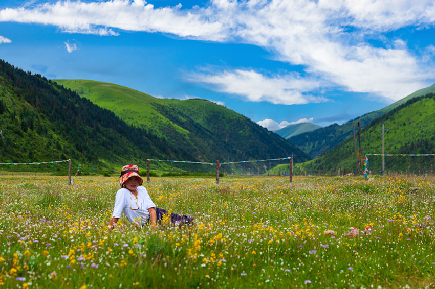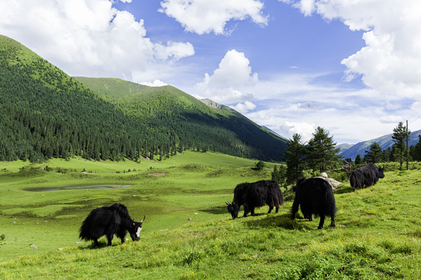 玉科,白猞猁皮鋪展開的長長山谷,依尼山是其心臟,扎拉山脈是其頭,噶科河、瑪科河是其雙臂,惹智塘和曲赤塘是其胸膛,革科和慶切科是其雙腳,措達以下則是其尾。這片山川地勢,晶瑩的雪峰、郁郁蔥蔥的林海、翠綠的草甸,清澈的碧湖,湛藍如洗的天空、潔白的云朵,棲息著豐富的珍稀動植物,構成了一幅如詩如畫、動人心魄的原生態(tài)畫卷。一年四季景致千姿百態(tài),美不勝收。夏三月,百花盛開,大地鋪展五彩錦緞。秋三月,一片金黃,映襯得山崗黃燦燦。冬三月,雪花翻飛,大地銀裝素裹。難怪旅游達人們要驚呼,贊美這里是甘孜的阿勒泰。