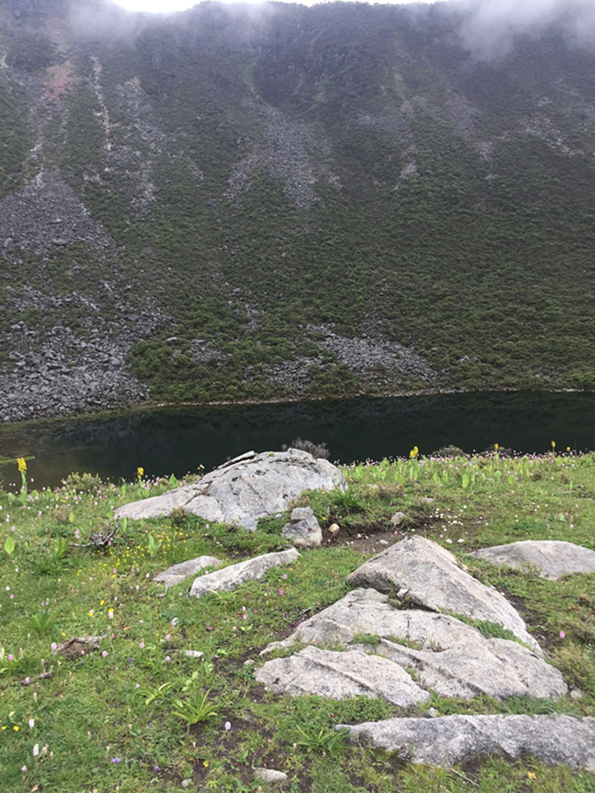 銀珠聽(tīng)到南吉即興唱出的山歌那么溫婉動(dòng)人,被風(fēng)吹冷的眼睛里落下了兩顆溫?zé)岬臏I水。她掩飾住自己的情緒,從粗重的呼吸里回答:“好??!”南吉聽(tīng)到銀珠對(duì)唱,臉上綻放出笑容。她們的腳底不再發(fā)出響聲的時(shí)候,就是已經(jīng)走到了兩座大山之間的那片山谷。一層淺雪里露著青草、一叢叢開(kāi)紫花的小杜鵑,還有密密匝匝的矮腳柳。銀珠站在一塊土包上,她打開(kāi)雙臂,一臉明媚地對(duì)著南吉說(shuō):“阿姐,這片沒(méi)有積雪的山谷就是我送給你的禮物?!?/span>