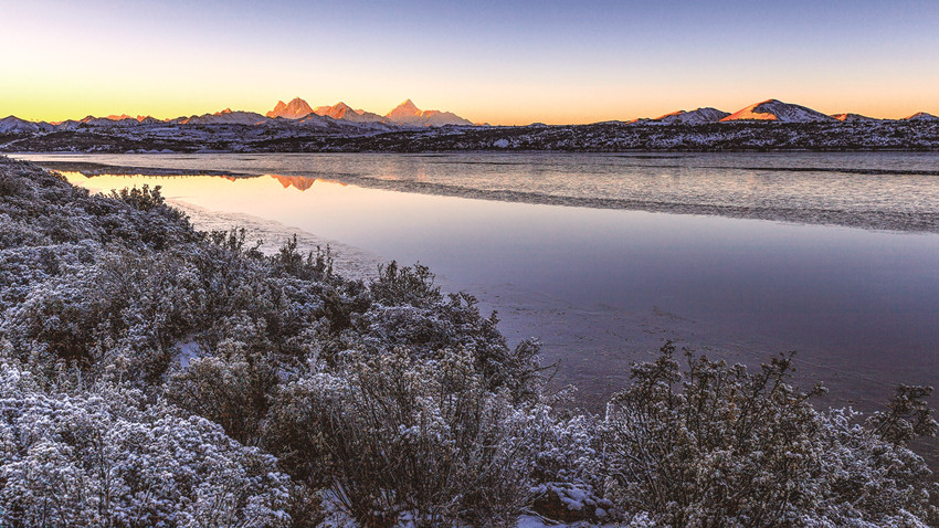 這是天上貢嘎寬大為懷、兼容并包的不凡氣度。它以獨(dú)具魅力和氣吞山河的雄偉壯麗,以及無法憾動(dòng)的王者之軀,包容并呵護(hù)著無數(shù)群峰、千溝萬壑、萬物生靈和諧共生共處,展現(xiàn)出一幕幕眾山拱衛(wèi)下精致的山岳大戲。如此這般,既把自身推向了高點(diǎn),又使依偎在身邊甚至遠(yuǎn)處的萬物生靈各得其所、各展其長、各有所獲。