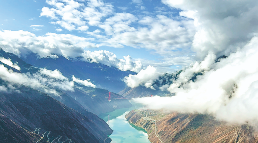 遠眺雅康高速瀘定大渡河大橋。