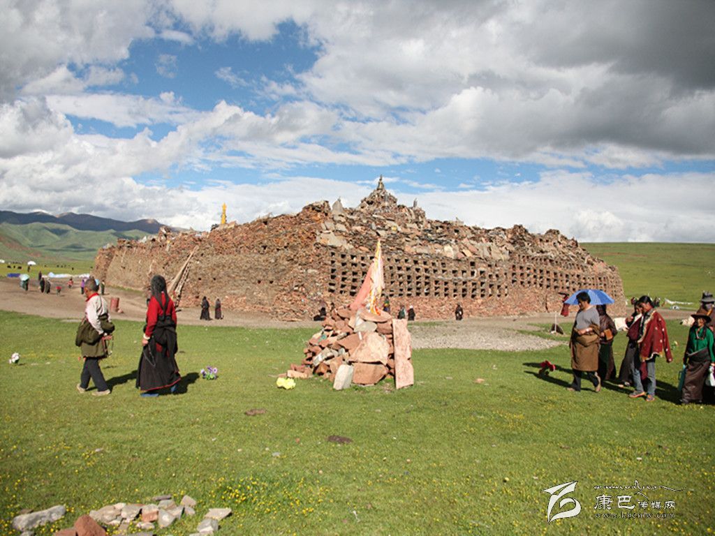 吃完午飯后,大家便走向松格瑪尼石經(jīng)城。短暫的煨桑儀式結(jié)束后,一匹匹高頭大馬繞著石經(jīng)城飛跑,隆達(dá)撒向半空,飄散在雨后的草原上。隨后,專家們走進(jìn)石經(jīng)城,挨個(gè)頂禮了一處石刻造像,據(jù)說,這一處石刻造像具有加持力,十分靈驗(yàn)??脊艑<覀兒陀浾呃@松格瑪尼石經(jīng)城走完一圈后,便離開,前往須巴神山。