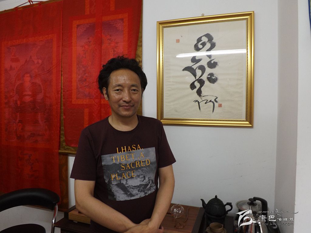 在嘎多探求藏文書法創(chuàng)新的同時,自己的工作并不穩(wěn)定,并幾經更換,最終工作地點從康定搬到了成都。在幾個畫院做了幾年工后,嘎多索性自己開始辦畫院,經營禮品唐卡。