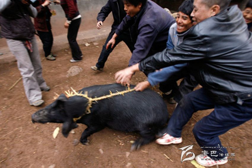 割豬蹄給娃娃們拿到山上玩。大人陪他們?nèi)计痼艋穑笓]他們將豬蹄不分你我地拋進(jìn)火中燒熟后,你一塊,我一坨地掏來吃,以養(yǎng)成團(tuán)結(jié)友愛的道德風(fēng)尚。