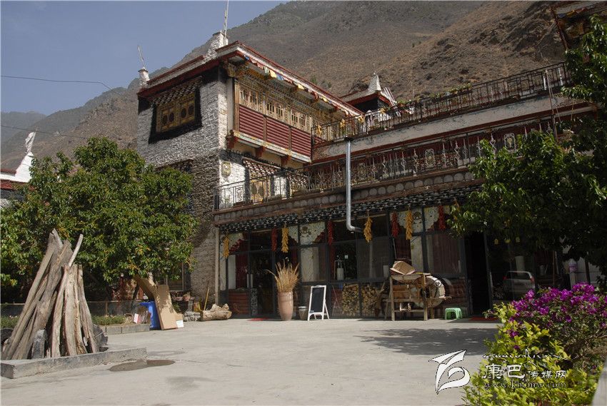 和瑞客棧的外觀很平常:一棟嘉絨風格的民居連接著一片寬敞的院子。一扇鐵門打開,一片干凈整潔的院落,一下子跳到眼前。院子兩旁刻意設(shè)計了日式風格的榻榻米,與中心水泥院壩區(qū)分開。