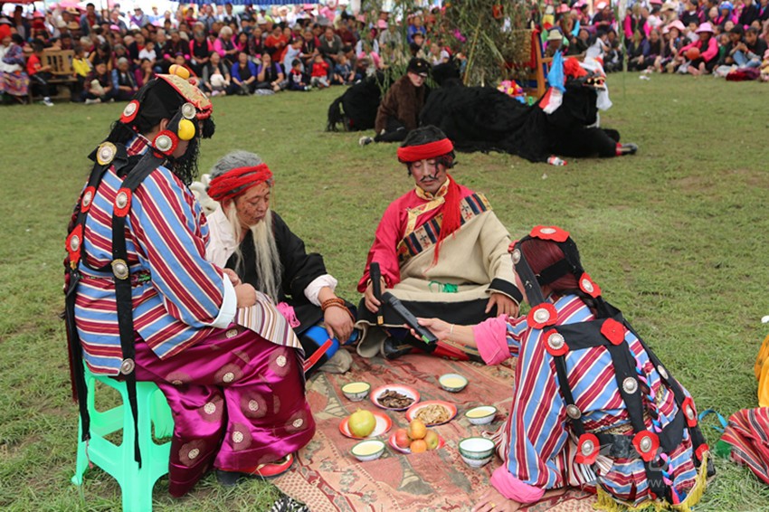 無論是小時候還是現(xiàn)在,“央勒節(jié)”都是我們期盼的節(jié)日,看不懂藏戲,但必須去湊鬧熱,否則這一年就有缺憾。父親作為家中老大,節(jié)前一個月會組織他的兄弟姐妹們開個家庭會議,商議湊錢、做飯、家什等各種細(xì)小瑣事,然后派出家族中幾個壯勞力去“龍王塘”約定束成的地盤上拔草、平地、做記號,表明“德嘎”家族今年還要在這個地方搭帳篷,其他人家看到記號,不會再來占地盤。節(jié)日前一天,稱為“亞堆”,不管有多麻煩,都要在這一天把家搬下去,晚上守帳篷的通常是堂姐夫,做飯洗碗則是我們姐妹們的任務(wù)?!褒埻跆痢庇袃裳蹨厝?,由于水質(zhì)的原因,酥油茶和冒面與自來水做出來的不是一個味兒,非常清香。特別喜歡“央勒節(jié)”之夜,它是一首詠嘆調(diào):浩瀚的星光下,巴楚河的潮汐恢宏豐沛,金沙江在九公里處等待它的匯入;“龍王塘”幾百個帳篷透出光亮,依稀可見人影綽綽,“好風(fēng)如水,清景無限”,巴塘人對閑適生活的追求在這一刻表達(dá)得淋漓盡致。我們期待著藏戲的鼓鈸和唱腔悠揚(yáng)婉轉(zhuǎn)地傳入帳篷中,做什么都有心情,勁頭十足。