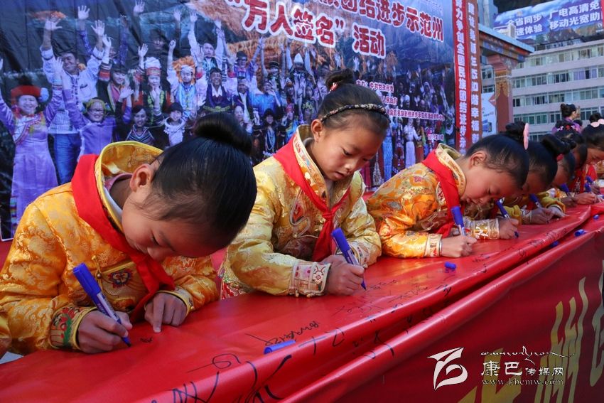 我們的家鄉(xiāng)更好更快地發(fā)展。”11月20日,在我州康定情歌廣場(chǎng)舉行創(chuàng)建全國(guó)民族團(tuán)結(jié)進(jìn)步示范州“萬人簽名”活動(dòng)現(xiàn)場(chǎng),來自省藏校的學(xué)生代表李康珠這樣說道。
