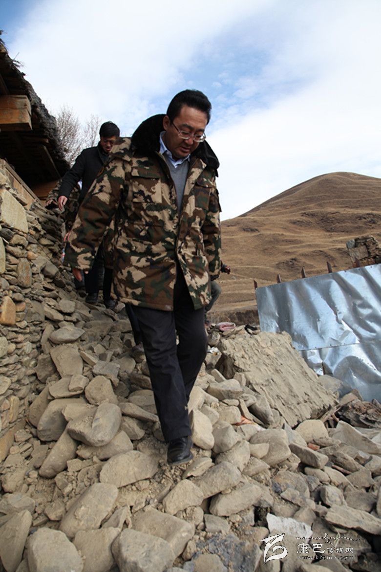 益西達(dá)瓦在道孚縣八美鎮(zhèn)中古村察看災(zāi)情。