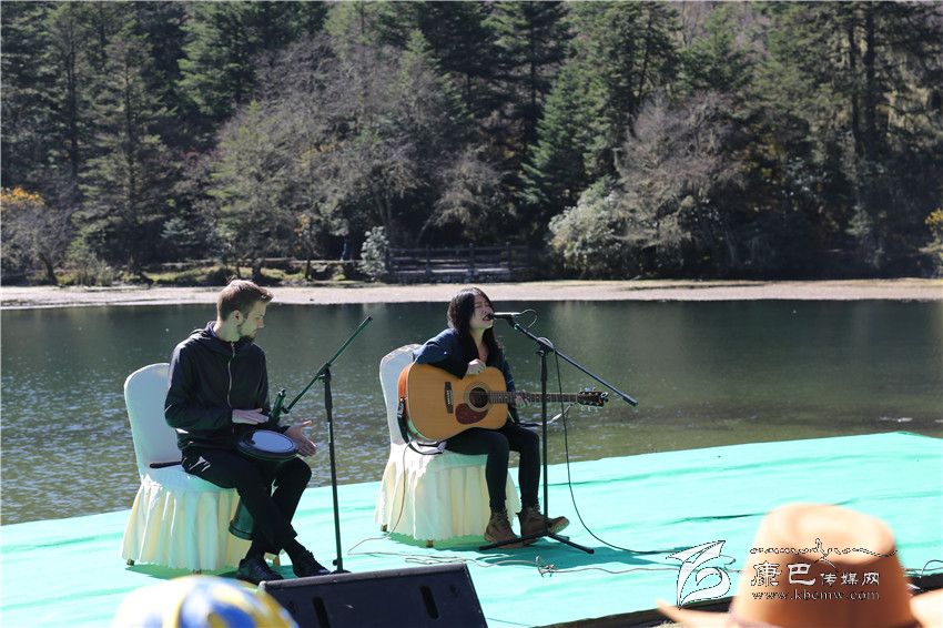 深秋的木格措,漫山遍野披上了金色的外套,七色海也被陽(yáng)光撒上了一層斑斕的“魚(yú)鱗”,泛著星光,很難想象這副如畫(huà)的風(fēng)景和不插電音樂(lè)將會(huì)碰撞出怎樣的火花。