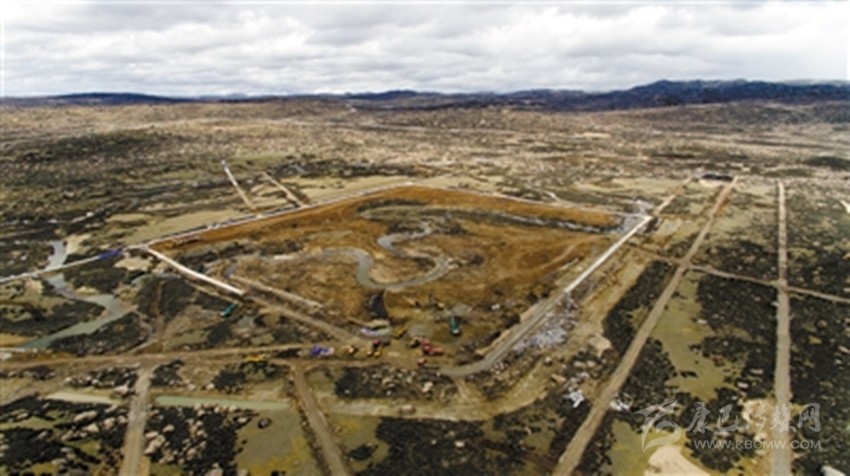 四川甘孜藏族自治州稻城縣海子山,平均海拔4110米。在散落著數(shù)米寬巨石的曠野上,一塊有10個足球場大的圓形區(qū)域已經成型,挖土機忙著挖出3個“品”字形、深4.5米的巨型水池。
