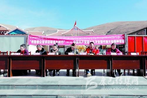 從康東到康北再到康南,處處是“州委群眾宣講團(tuán)和諧鄉(xiāng)村行”——中國共產(chǎn)黨第十九次全國代表大會精神宣講團(tuán)成員的身影。石渠、德格、白玉、稻城、得榮、鄉(xiāng)城、理塘、道孚、瀘定、康定……州委群眾宣講團(tuán)在各地的宣講會座無虛席,農(nóng)牧民群眾和寺廟僧尼聚精會神聆聽,認(rèn)真做筆記。州委群眾宣講團(tuán)“廣泛講”取得良好效果。
