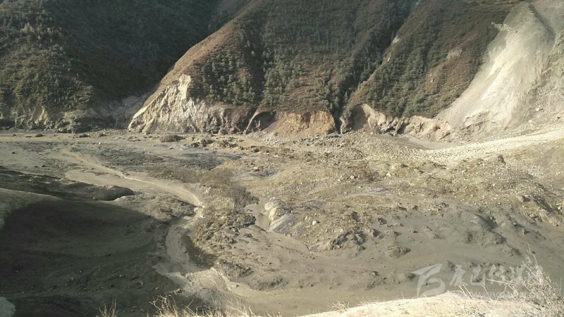 上午10點過,突擊隊抵達(dá)生公村一個山坡上,看見了堰塞體。隨后,突擊隊繼續(xù)出發(fā),下午5點過,突擊隊終于抵達(dá)了距離壩體約200米遠(yuǎn)的地方,并在這里用衛(wèi)星電話向后方播報了信息后,便攀上了高約70米,寬約200米的堰塞體實地查勘,并再次向后方匯報了情況。