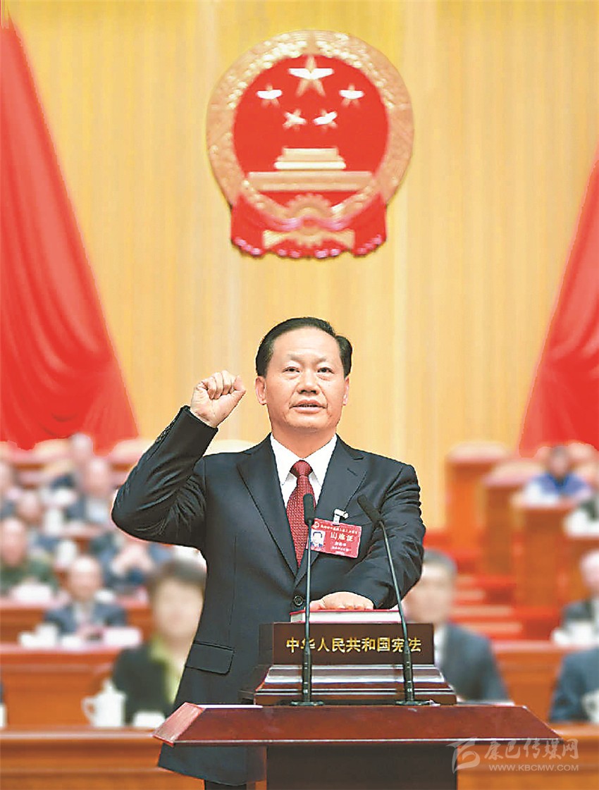 隨后,舉行憲法宣誓儀式。彭清華走上宣誓臺(tái),左手撫按憲法,右手舉拳,面向全體人大代表莊嚴(yán)宣誓。新當(dāng)選的省十三屆人大常委會(huì)委員以及省第十三屆人民代表大會(huì)監(jiān)察和司法委員會(huì)、社會(huì)建設(shè)委員會(huì)主任委員、副主任委員、委員也進(jìn)行了憲法宣誓。