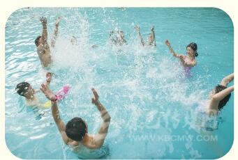 嬉戲溫泉中。