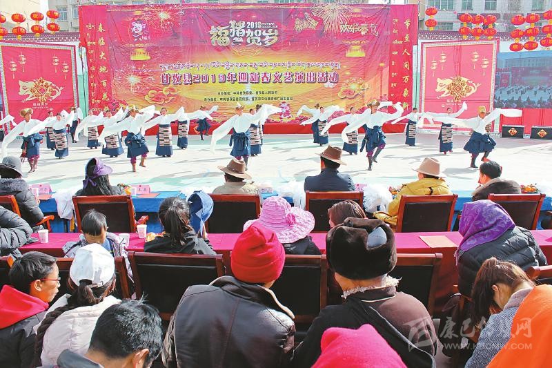 本網(wǎng)訊 鑼鼓喧天,掌聲陣陣,彩袖翩然,喝彩連連。2月6日,農(nóng)歷大年初二,情歌康定晴空萬(wàn)里,張燈結(jié)彩。當(dāng)天上午,情歌廣場(chǎng)更是歌舞歡騰、年味十足——由康定市委、市政府主辦的“我們的中國(guó)夢(mèng)?文化進(jìn)萬(wàn)家——康定市春節(jié)暨藏歷新年群眾文體活動(dòng)”在這里精彩上演。在一個(gè)半小時(shí)的活動(dòng)中,20多名甘孜兒女與州外專(zhuān)業(yè)演出隊(duì)伍同臺(tái)獻(xiàn)藝,為康定市民和四方游客呈現(xiàn)了一場(chǎng)集歌曲、舞蹈、魔術(shù)、雜技、舞獅、變臉、小品、脫口秀等多種藝術(shù)形式于一體的新春文藝盛宴。