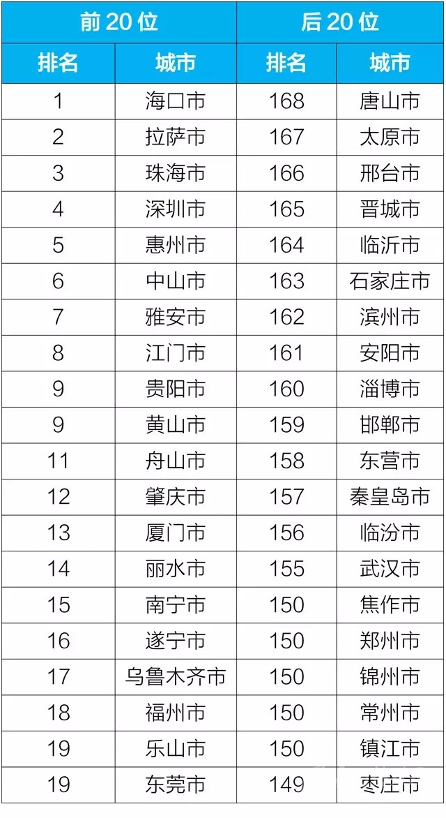 按照國務(wù)院《打贏藍(lán)天保衛(wèi)戰(zhàn)三年行動(dòng)計(jì)劃》有關(guān)要求,生態(tài)環(huán)境部在原有74個(gè)重點(diǎn)城市空氣質(zhì)量排名基礎(chǔ)上,將排名城市范圍擴(kuò)大至168個(gè)地級(jí)及以上城市,包括京津冀及周邊地區(qū)、長三角地區(qū)、汾渭平原、成渝地區(qū)、長江中游、珠三角等重點(diǎn)區(qū)域以及省會(huì)城市和計(jì)劃單列市。從2018年7月起,生態(tài)環(huán)境部每月發(fā)布空氣質(zhì)量相對較好的前20個(gè)城市和空氣質(zhì)量相對較差的后20個(gè)城市名單,每半年發(fā)布空氣質(zhì)量改善幅度相對較好和相對較差的20個(gè)城市名單。