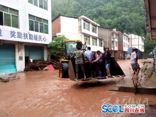 “上午8點(diǎn)左右,暴雨達(dá)到極值,河流水位迅速上漲,部分地區(qū)出現(xiàn)山體垮塌,場(chǎng)鎮(zhèn)內(nèi)澇較為嚴(yán)重。”據(jù)萬(wàn)源市竹峪鎮(zhèn)黨委書記劉峰說(shuō),當(dāng)時(shí)全體鄉(xiāng)村干部、派出所民警和民兵組成的應(yīng)急救災(zāi)小分隊(duì),正在路上巡邏,疏浚堵塞的涵洞。10多分鐘后,劉峰得到報(bào)告:場(chǎng)鎮(zhèn)上游的包臺(tái)村兩河口發(fā)生山體垮塌,一居民樓房屋被淹,十余名群眾被困,正在二樓等待救援。隨即,由副鎮(zhèn)長(zhǎng)謝鵬帶領(lǐng)一只小分隊(duì)火速趕往,因洪水湍急、道路阻塞,施救人員只好調(diào)來(lái)鏟車施救,最終將被困人員成功解救出來(lái)。