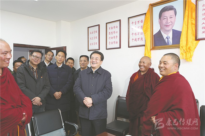 一路翻山越嶺,鄧小剛首先深入駐地營房和基層服務(wù)中心,看望一線武警官兵、公安干警、消防隊員和基層黨員干部,帶去省委的關(guān)心慰問。他指出,奮戰(zhàn)在雪域高原一線的同志戰(zhàn)嚴(yán)寒、斗風(fēng)雪、抗缺氧,迎難而上、頑強(qiáng)拼搏,為藏區(qū)繁榮發(fā)展長治久安作出了重要貢獻(xiàn),要堅持嚴(yán)管和厚愛相結(jié)合,多了解基層一線同志的情況,關(guān)心他們的工作生活,聽取工作建議,幫助解決實際困難問題,注重在一線培養(yǎng)鍛煉干部,引導(dǎo)廣大黨員干部立足本職崗位爭做奉獻(xiàn)。在藏傳佛教寺廟和僧舍,鄧小剛同僧尼、信眾深入交心談心,了解他們修行和生活情況,勉勵他們發(fā)揚愛國愛教、守法持戒優(yōu)良傳統(tǒng),多做利益眾生、造福社會的善事好事,發(fā)揮宗教促進(jìn)社會和諧的積極作用。在聽取州縣工作匯報后,他強(qiáng)調(diào),今年是新中國成立70周年,維護(hù)好藏區(qū)和諧穩(wěn)定責(zé)任重大,要樹牢“四個意識”,堅定“四個自信”,做到“兩個維護(hù)”,全面貫徹黨的宗教工作基本方針,堅持宗教中國化方向和獨立、自主、自辦原則,深入推進(jìn)藏傳佛教寺廟依法規(guī)范管理,營造安全、規(guī)范、潔凈、有序的修行環(huán)境,積極引導(dǎo)宗教與社會主義社會相適應(yīng),深入扎實做好各項工作,促進(jìn)藏區(qū)繁榮發(fā)展長治久安。