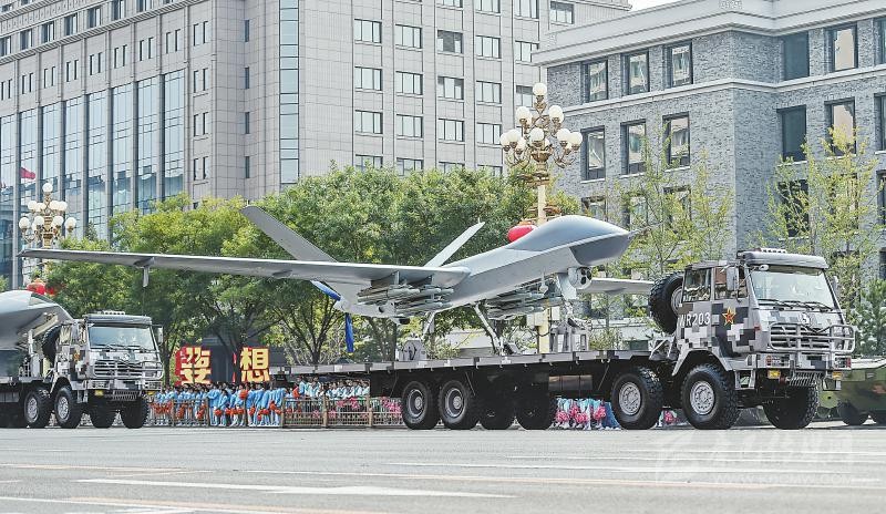 在兩輛指揮引導(dǎo)車帶領(lǐng)下,由攻擊-2無人機(jī)、攻擊-11無人機(jī)和反輻射無人機(jī)組成的無人作戰(zhàn)第2方隊(duì)通過天安門,向世界展示了中國無人作戰(zhàn)平臺(tái)的又一嶄新成就。