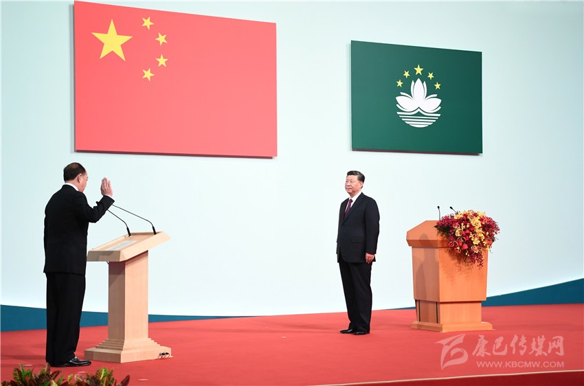 慶祝澳門回歸祖國20周年大會暨澳門特別行政區(qū)第五屆政府就職典禮20日上午在澳門東亞運動會體育館隆重舉行。中共中央總書記、國家主席、中央軍委主席習近平出席并發(fā)表重要講話。他指出,澳門回歸祖國20年來,澳門特別行政區(qū)政府和社會各界人士同心協(xié)力,開創(chuàng)了澳門歷史上最好的發(fā)展局面,譜寫了具有澳門特色的“一國兩制”成功實踐的華彩篇章。他希望澳門特別行政區(qū)新一屆政府和社會各界人士站高望遠、居安思危,守正創(chuàng)新、務實有為,在已有成就的基礎上推動澳門特別行政區(qū)各項建設事業(yè)躍上新臺階。