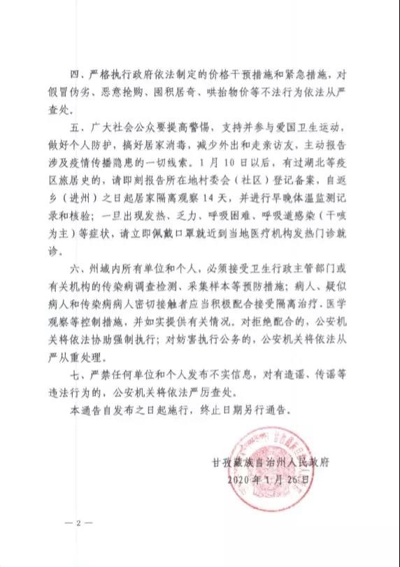 1月27日,按照《新型冠狀病毒感染的肺炎診療方案》規(guī)定,根據(jù)病例臨床表現(xiàn),結(jié)合流行病學史、實驗室檢測結(jié)果,經(jīng)甘孜州新型冠狀病毒感染的肺炎病例確認專家組評估確認此1例病例為輸入性新型冠狀病毒感染的肺炎病例。截止1月27日24時,我州累計報告新型冠狀病毒感染的肺炎確診病例3例。在治重癥1例,其余患者病情穩(wěn)定,均在定點醫(yī)院接受治療。正在接受醫(yī)學觀察29人。目前我州已發(fā)現(xiàn)新型冠狀病毒感染的肺炎患者,均為輸入性病例,無本地發(fā)病病例。全州上下正在全力以赴開展疫情防控工作,請大家正確認識、科學防控、不必擔心和恐慌。希望大家:1、不信謠、不傳謠,少外出、勤洗手、常通風,注重口罩文明和咳嗽文明。2、請大家配合各項疫情防控工作,如果發(fā)現(xiàn)異常車輛和人員,主動向當?shù)匦l(wèi)健局或疾控中心報告。3、出現(xiàn)發(fā)熱咳嗽等癥狀,立即佩戴口罩到當?shù)乜h人民醫(yī)院就診,主動向醫(yī)生報告有外出旅行史情況。4、主動向村委會、居委會申報外出返鄉(xiāng)情況,接受網(wǎng)格化管理,確保自己、家人和親戚朋友安全。5、懇請游客朋友們配合交通檢疫檢查,履行傳染病防治法法定職責。