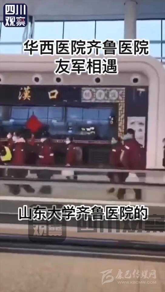 2月7日,四川大學(xué)華西醫(yī)院和山東大學(xué)齊魯醫(yī)院的援助隊(duì)在武漢天河機(jī)場(chǎng)相遇,兩隊(duì)醫(yī)生護(hù)士隔空呼喊“加油”。據(jù)悉,他們將共同接管武漢大學(xué)人民醫(yī)院東院區(qū)。