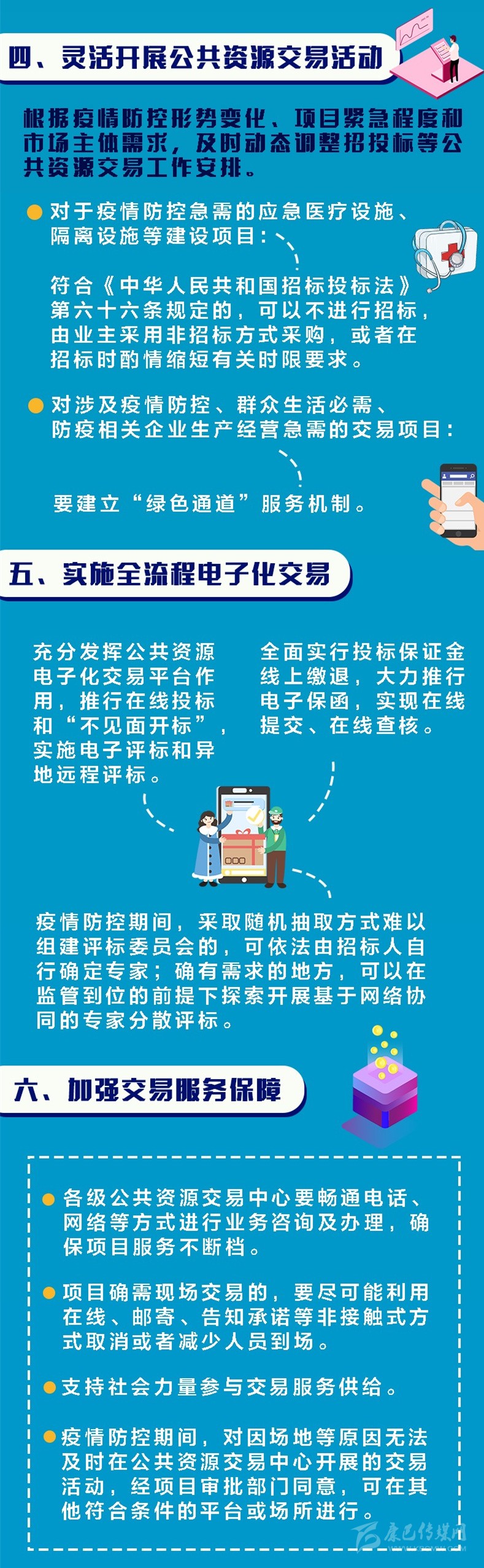 答:我省將根據(jù)疫情防控形勢(shì)變化、項(xiàng)目緊急程度和市場(chǎng)主體需求,及時(shí)動(dòng)態(tài)調(diào)整招投標(biāo)等公共資源交易工作安排。