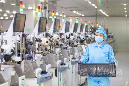 遂寧市經(jīng)開(kāi)區(qū)藍(lán)彩電子智能信息化車(chē)間,工人正在生產(chǎn)線開(kāi)足馬力加緊生產(chǎn)。