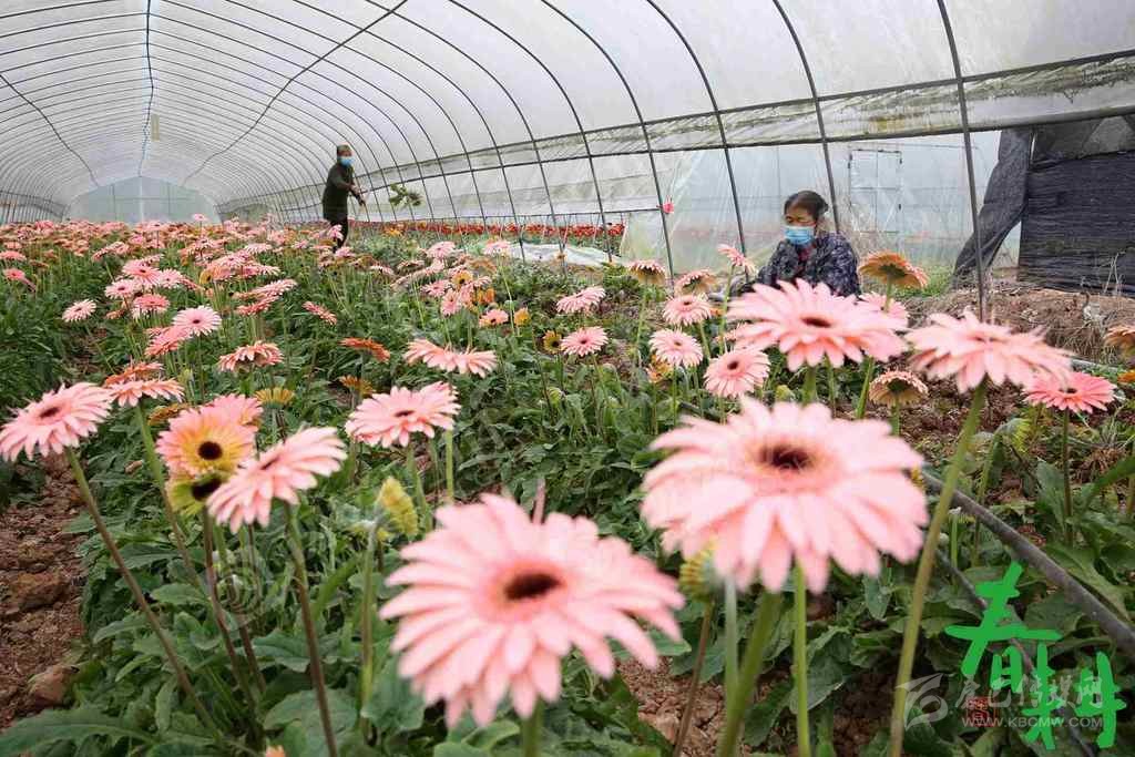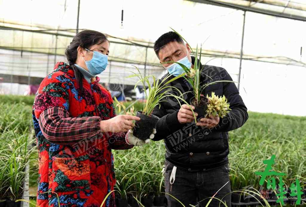 綿陽(yáng)市安州區(qū)塔水鎮(zhèn)蘭草大棚內(nèi),工人們戴著口罩正在園內(nèi)下花、翻盆、除草,搶抓農(nóng)時(shí),做到防疫春管兩不誤。
