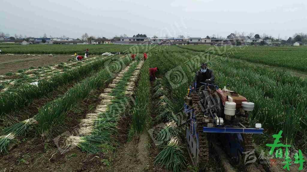 綿竹市富新鎮(zhèn)吉兆村14組,厚富種植專(zhuān)業(yè)合作社社員把大蔥收獲機(jī)采收后的大蔥打捆,以便后騰地種植蔬菜蓮花白。