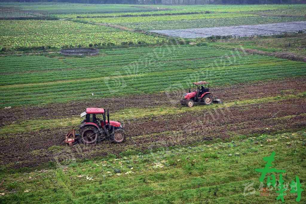 旋耕機(jī)在南充市高坪區(qū)金鳳山村廣豐有機(jī)蔬菜基地整理菜地。