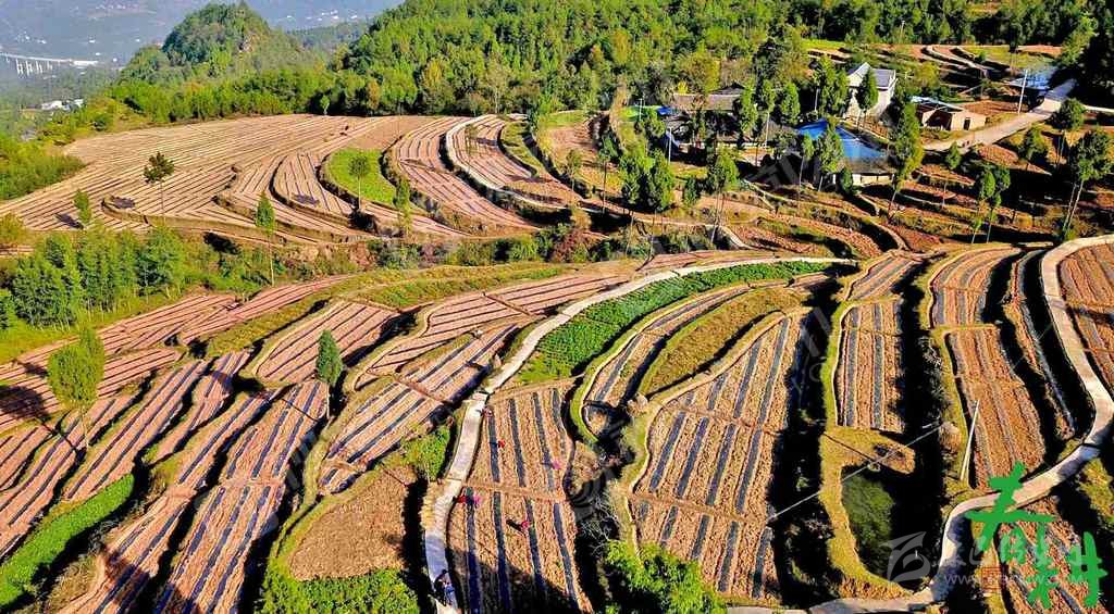 南江縣楊壩鎮(zhèn)組織的勞動(dòng)力在柏林村新開(kāi)墾的茶梯地開(kāi)溝理廂準(zhǔn)備栽植茶苗。