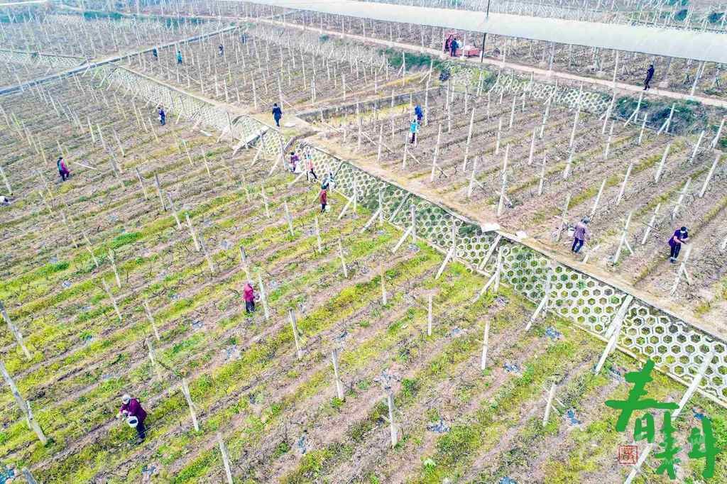 巴中市恩陽(yáng)區(qū)上八廟鎮(zhèn)安居村的葡萄產(chǎn)業(yè)園里,產(chǎn)業(yè)員工佩戴口罩,分散在產(chǎn)業(yè)園里施肥。