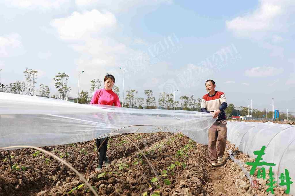 閬中市彭城鎮(zhèn)五谷臺(tái)村,村民在精心管護(hù)蔬菜,把菜苗從薄膜里“掏出來(lái)”。