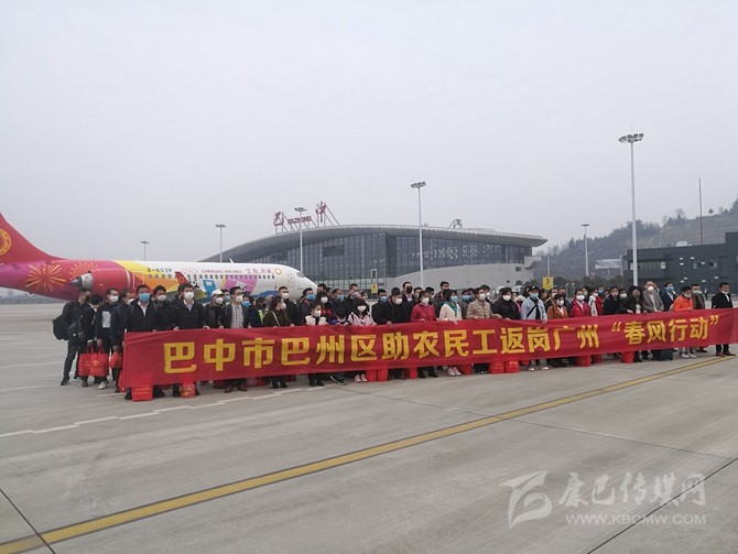 2月26日,巴中恩陽機(jī)場首班農(nóng)民工返崗包機(jī)飛赴廣州。