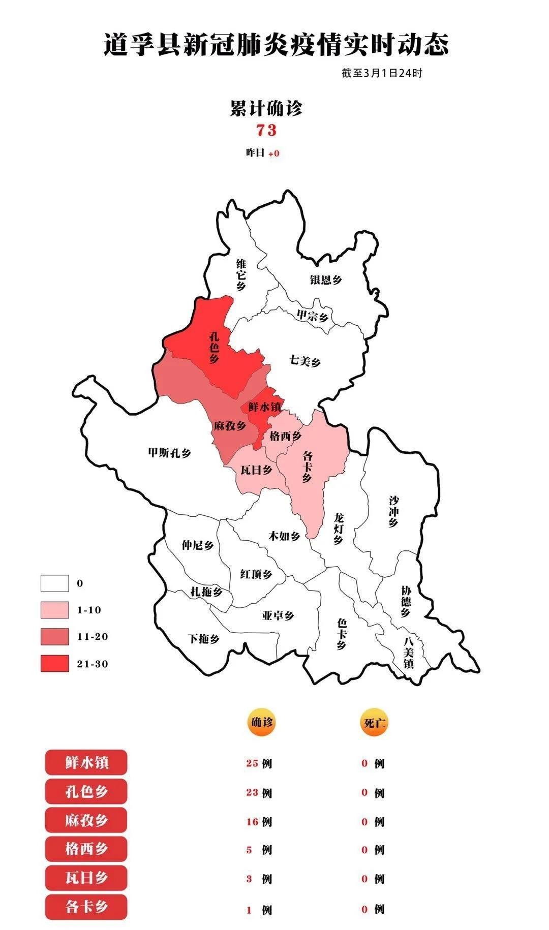 縣(市) 累計病例 新增病例 道孚縣 73 0 康定市 2 0 色達縣 2 0 稻城縣 1 0