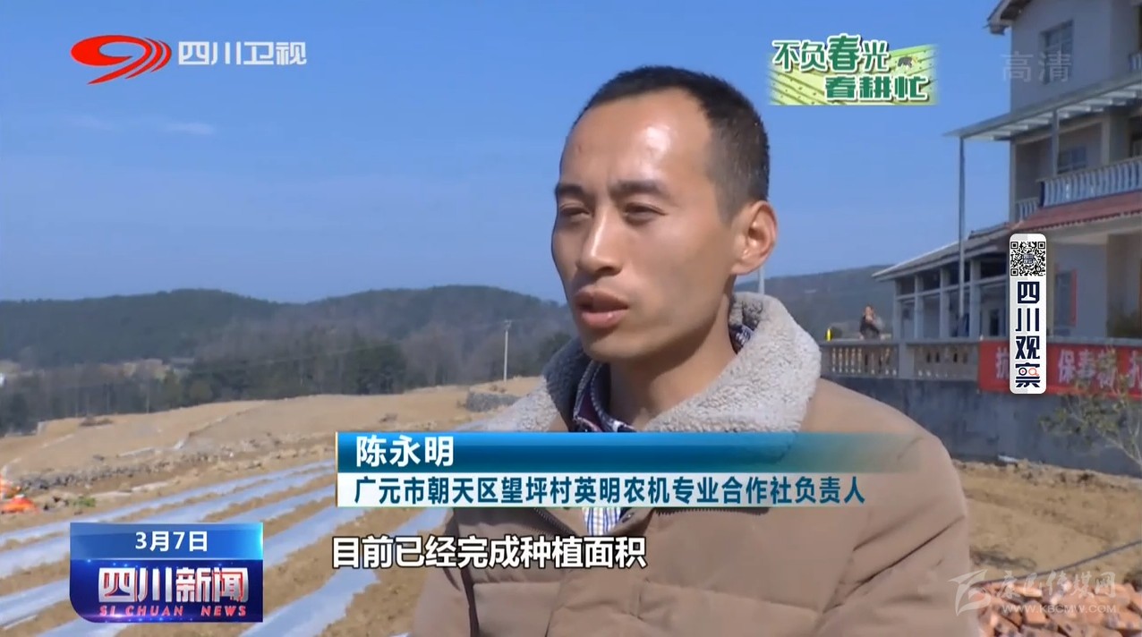 廣元市朝天區(qū)望坪村英明農(nóng)機專業(yè)合作社負責(zé)人陳永明:目前已經(jīng)完成種植面積有三四十畝,大量投入機器播種,300多畝地五六天就能完成。
