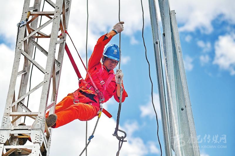 到達(dá)施工現(xiàn)場,組塔工作也是十分艱難,鐵塔結(jié)冰,僅登塔時間便多出一倍,而作業(yè)時間每次不能超過半小時,還要隨時面臨大風(fēng)、大雨、冰雹等天氣,導(dǎo)致工期推進(jìn)速度較平原地區(qū)慢一倍時間?!盀榱粟s在6月20日完成任務(wù),我連每天與女兒視頻的時間都省了,全力投入工作中?!表?xiàng)目部負(fù)責(zé)導(dǎo)線展放的電力工人楊彪說。