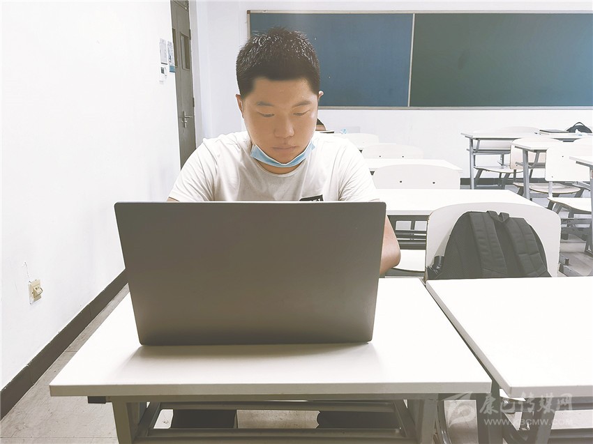 王志龍?jiān)谇迦A大學(xué)的教室內(nèi)學(xué)習(xí)。
