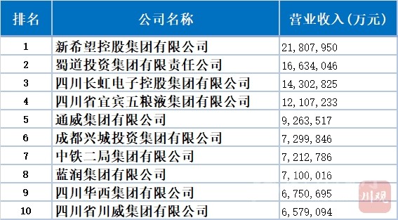 先來看看2021年四川企業(yè)100強(qiáng)前10名: