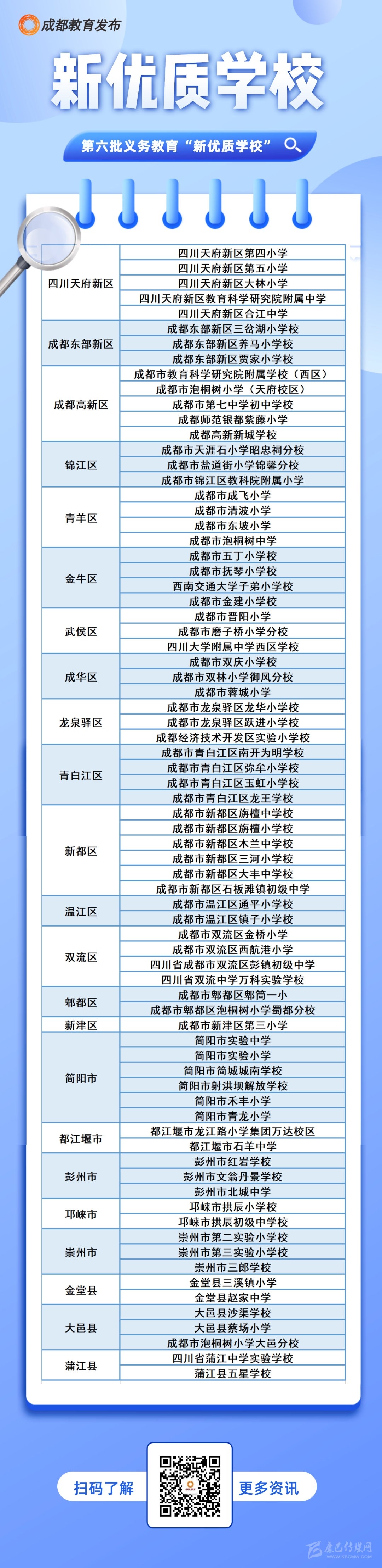 記者從成都市教育局獲悉,1月13日,成都市教育局公布全市第六批義務教育“新優(yōu)質(zhì)學校”名單,成都七中初中學校等75所學校被認定為全市義務教育“新優(yōu)質(zhì)學校”(名單附后)。