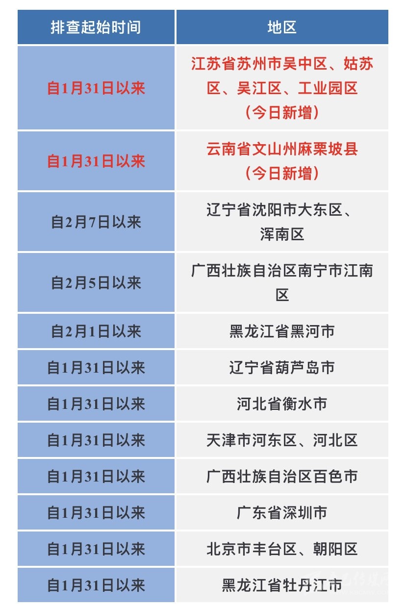 近期重點關(guān)注江蘇省蘇州市,遼寧省葫蘆島市,云南省文山州,廣西壯族自治區(qū)百色市疫情。不前往高、中風(fēng)險地區(qū)以及發(fā)生本土疫情的地區(qū)。