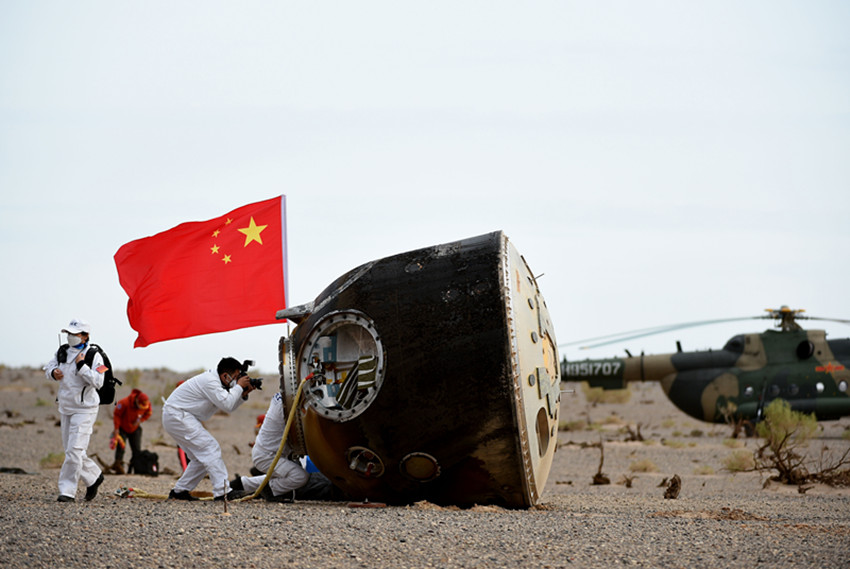 6月4日,神舟十五號(hào)載人飛船返回艙在東風(fēng)著陸場成功著陸。 新華社 發(fā)